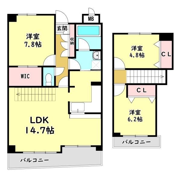| 間取り詳細 | LDK14.7畳、洋7.8畳、洋4.8畳、洋6.2畳 | 保証会社 | 加入要 保証料:月額賃料等の50% |