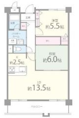 | 間取り詳細 | LDK13.5畳、和6畳、洋5.5畳 | 保証会社 | 加入要 保証料:月額賃料等の50% |