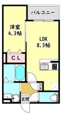 | 間取り詳細 | LDK8.3畳、洋4.3畳 | 保証会社 | 加入要 保証料:月額賃料等の100% |
