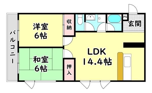 間取り詳細 | LDK14.4畳、和6畳、洋6畳 | 保証会社 | 加入要 保証料:月額賃料等の60% |