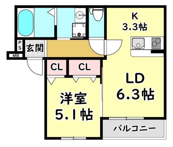 | 間取り詳細 | LD6.3畳、K3.3畳、洋5.1畳 | 保証会社 | 加入要 保証料:月額賃料等の50% |