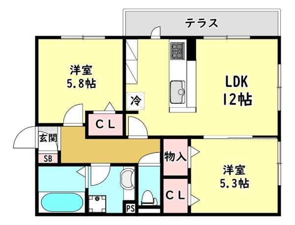 | 間取り詳細 | LDK12畳、洋5.8畳、洋5.3畳 | 保証会社 | 加入要 保証料:35,000 |