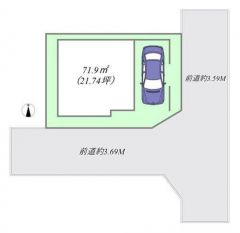 | 土地面積基準 | 公簿 | 接道 | 南 幅員3.69m 東 幅員3.59m |